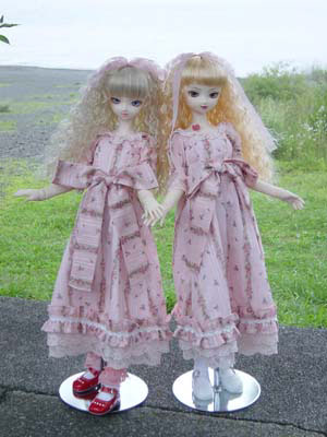 あっ、ラピスちゃんも同じドレス持ってるんですね。(^_^; 三つ子っこ? えっ? 2.5人? (^_^; ちょっと風が強くて…、帽子を飛ばされないように気をつけてね。 |