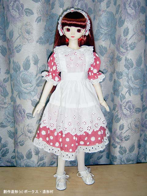 変わって、こちらは赤色のエプロンドレス、可愛らしいですよね。