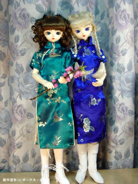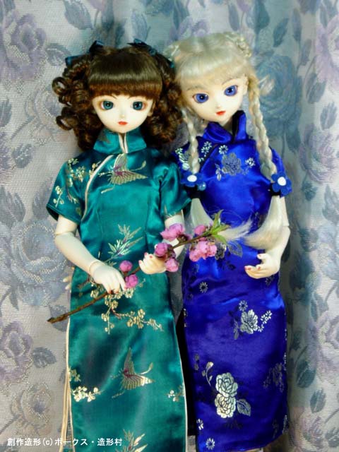 「花・館」さんのチャイナドレスをお揃いでまとっての写真です。 あ、紅蘭は「ちょっと…、ごめんなさい。」と言ってました。 一応、赤のチャイナはあるし、アオザイも着てますけどね、恥かしがってます。(^_^; 碧:「春はまだかな〜。」 藍:「そうだね、早く来ないかなっ。」 家にあった早咲きの桜の枝をちょっと拝借して春らしくしてみました。 (碧の手も07番に換えてあります。) |